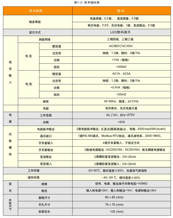 多功能電力監(jiān)測儀表是一種具有可編程測量,綜合顯示三相電參量、電能計(jì)量、數(shù)字通訊功能于一體的智能化儀表。能夠完成電量測量、電能計(jì)量、數(shù)據(jù)顯示、采集及傳輸,可廣泛應(yīng)用于變電站自動(dòng)化、配電自動(dòng)化、智能建筑、企業(yè)內(nèi)部電能計(jì)量、管理、考核。測量精度為0.5S級,實(shí)現(xiàn)現(xiàn)場顯示和遠(yuǎn)程RS-485數(shù)字接口通訊、采用Modbus-RTU通訊協(xié)議。